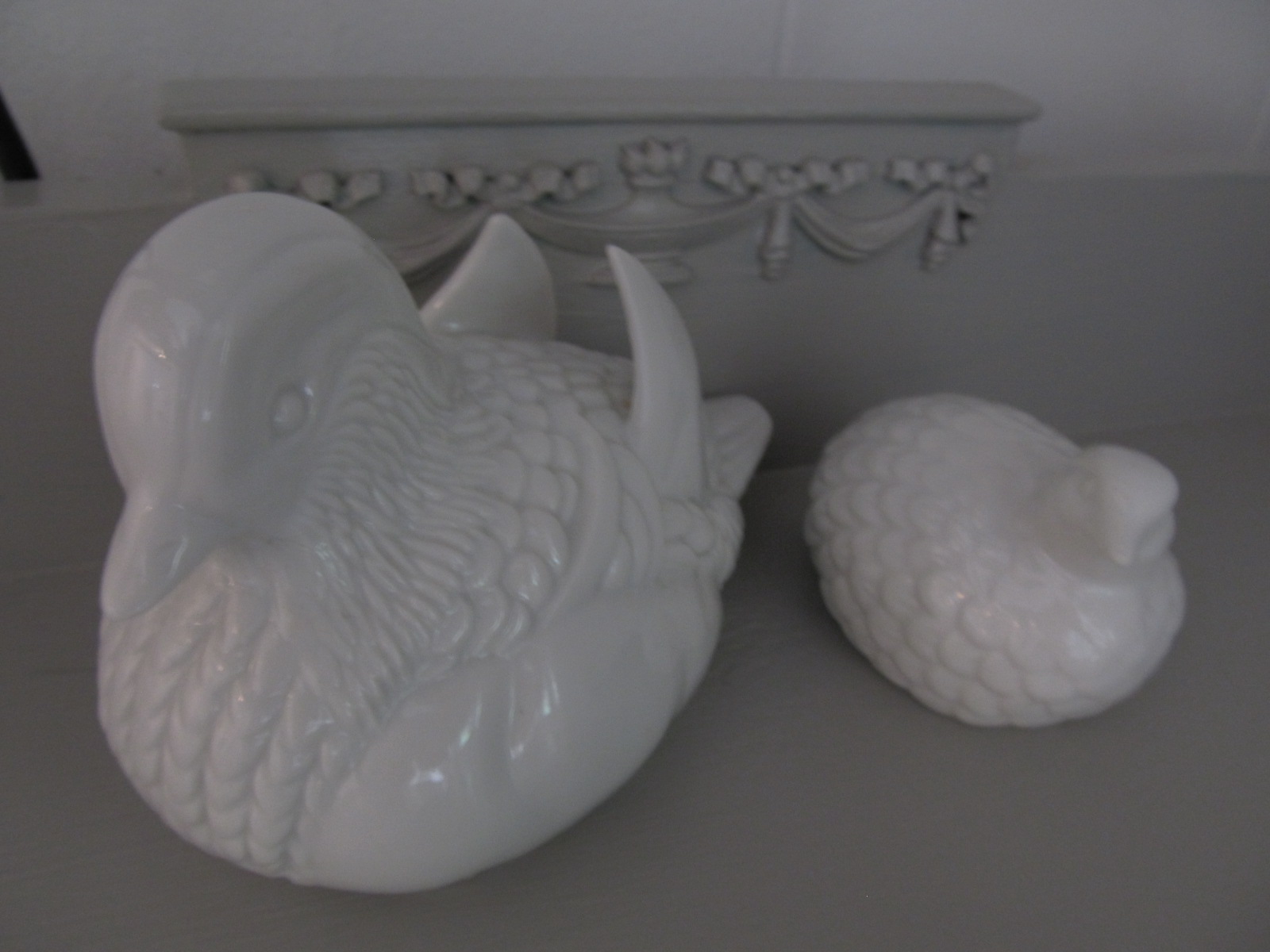 | Coffee table, painted out white, also found at Salvation Army. |